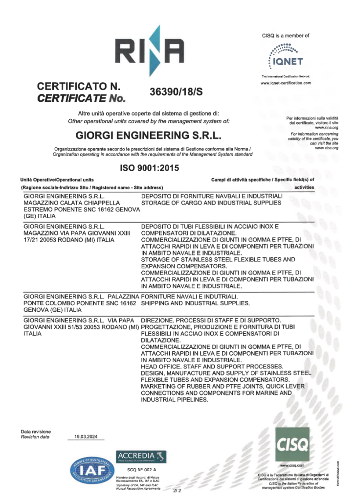 Today, Giorgi Engineering is one of the leading Italian brands in the design and production of Steel Expansion Joints and Pipes, as well as in the marketing of Rubber and PTFE Pipes and Joints, and Roller Supports.